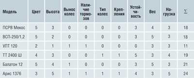 В глаза бросается разнотипность колес. Практически все вышки, кроме "Арис" и "УЛТ-Оснастки", комплектуются колесными опорами без тормозов. При этом туры ПСРВ 21, ВСП-250/1, 2, "Балатон-12" имеют промышленные (легкие) колеса, рассчитанные на вес в 145 кг. Колеса вышек ТТ 2400Ш и "Арис 1376" большегрузные и способны выдержать до 350 кг каждое. Тем не менее все представленные колеса поворотные (поворачиваются вокруг своей оси) и обрезиненные. Немаловажное значение с точки зрения монтажа и эксплуатации имеет и то, что туры "Техноинт" и "Арис" имеют контргайки на домкратах.